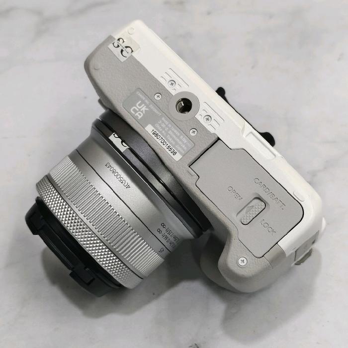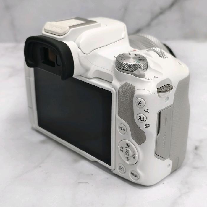Fitur Utama: Kamera mirrorless APS-C dengan desain ringkas dan ringan, kualitas gambar tajam dan warna natural, autofocus cepat dan akurat dengan Dual Pixel CMOS AF, cocok untuk foto, video, dan vlogging, lensa kit 18–45mm STM fleksibel untuk wide hingga tele ringan, autofocus STM halus dan senyap untuk video, mudah digunakan untuk pemula hingga content creator, serta kompatibel dengan sistem lensa Canon RF / RF-S.
