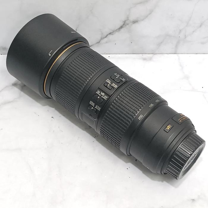 Spesifikasi Utama: Mount Lensa: Nikon F Format Sensor: Full Frame (FX) Focal Length: 70–200mm Aperture Maksimum: f/4 Aperture Minimum: f/22 Teknologi Stabilizer: Vibration Reduction (VR) Elemen Khusus: ED (Extra-low Dispersion) Autofocus: AF-S Silent Wave Motor Minimum Fokus: sekitar 1 m Diameter Filter: 67 mm Tipe Lensa: Telephoto Zoom.