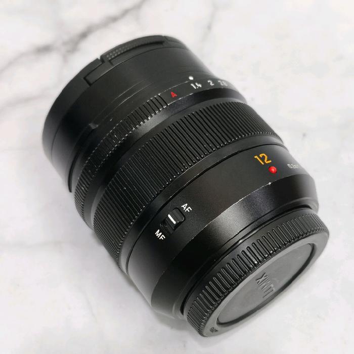 Panasonic Leica DG Summilux 12mm f/1.4 ASPH adalah lensa prime sudut lebar premium untuk Micro Four Thirds (setara 24mm) yang menawarkan bukaan f/1.4 cerah, ideal untuk low-light dan depth of field tipis. Lensa ini memiliki konstruksi logam tahan cuaca (debu/cipratan), cincin apertur manual, dan fokus otomatis yang cepat serta akurat.